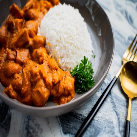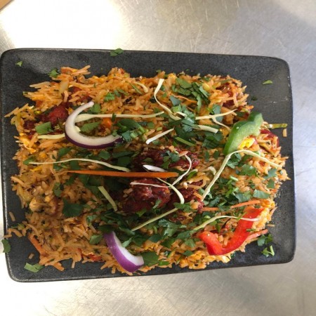 All entrees are served with Indian long grain basmati rice cooked to perfection, flavored with saffron, cumin and whole spices, add extra rice for $2.49